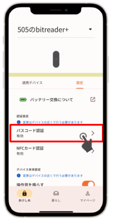 5)「パスコード認証」をタップします。