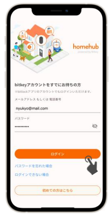 1) homehub(ホームハブ)アプリにログインします。