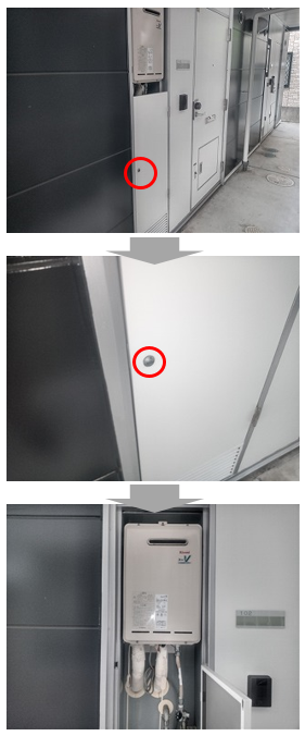 1) 部屋の外にある給湯器の下の扉を開けます。