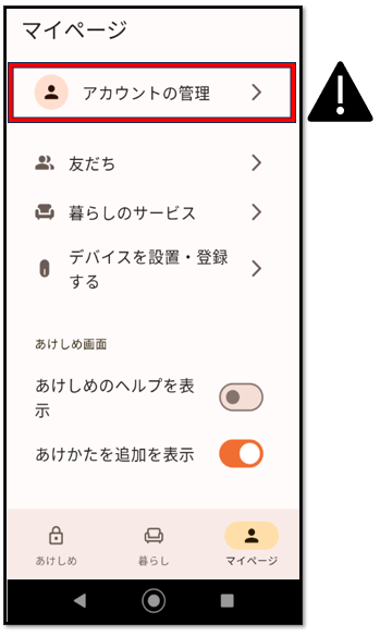 ホームハブ(homehub)アプリ内「マイページ」からアカウント情報の編集ができるようになっていますが、レオパレス21の入居者様はアカウント情報(電話番号・メールアドレス)を変更しないようにご注意ください。
